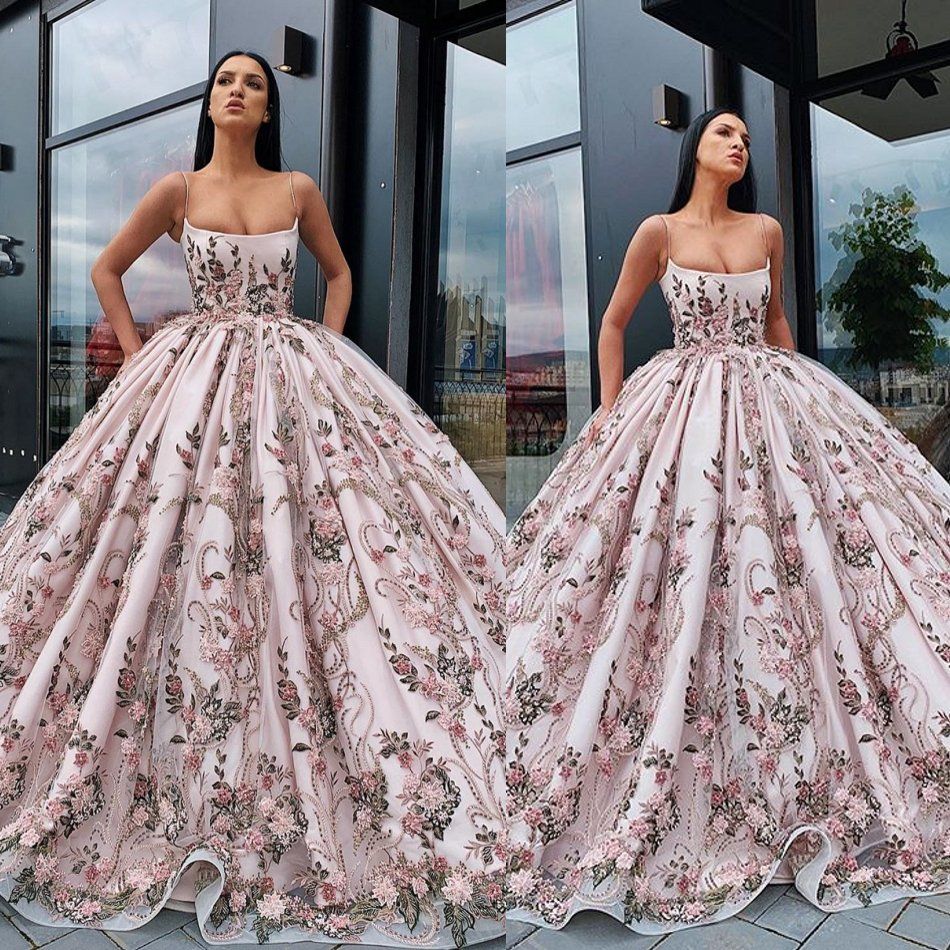 2019 Ball Gown Formal Dresses Spaghetti Lace Appliqued Floor ...